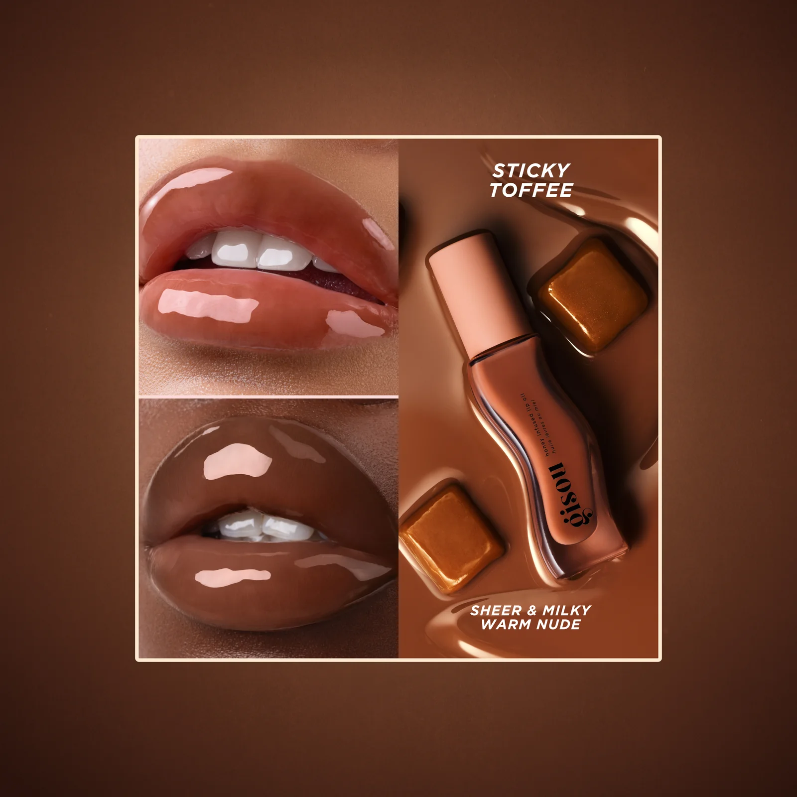 Un trío irresistible de aceites labiales con color y textura lechosa: Vanilla Glaze, Sticky Toffee y Milky Mocha, cada uno con una hidratación intensa y duradera y un brillo radiante. ¡Sin sensación pegajosa!