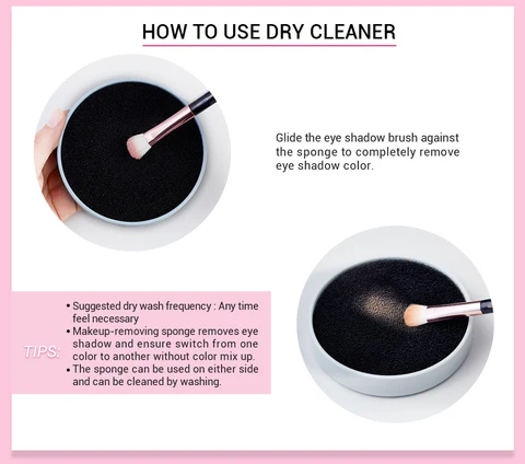 Performance grade silicone ridges clean brush heads quickly + easily in the palm of your hand, removes make up, oils and impurities, extends brush life, truer color. Makeup-removing sponge used dry that allows you to remove eye shadow color and switch to another color without any product transfer.